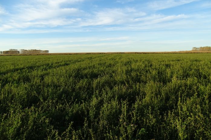 Agricultura bajo riego, girasol y alfalfa para semilla, cebolla, trigo, maíz, agropiro, etc.
