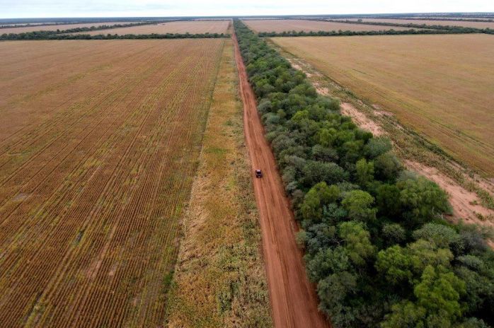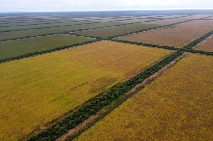 8.400 has. dedicadas a las agricultura, las 1.200 has. restantes corresponden a cortinas y un sector de monte que bordea a un arroyo.