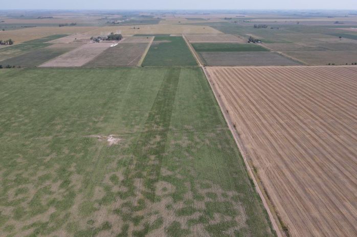 Se trata de un campo mixto con un sector agrícola bien definido de aproximadamente unas 200 has., un sector intermedio para pasturas de 80 has. y el resto del campo 315 has. de campo tendido apto para la cría.