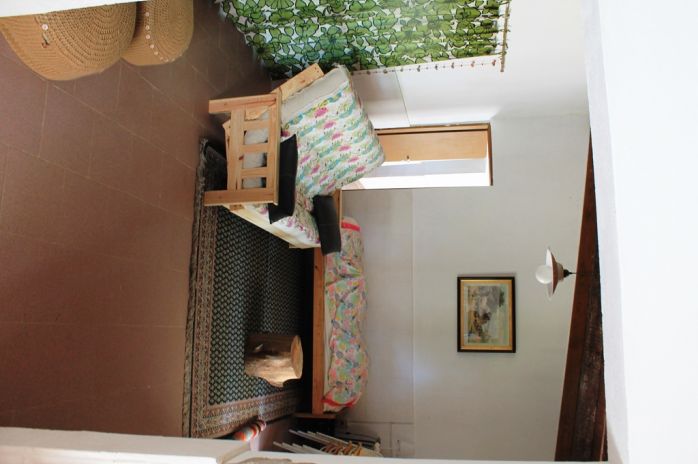 • Casa construida de material, galería a la entrada, techo de chapa a un agua conformado por un dormitorio, baño, living, comedor cocina.