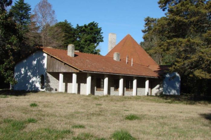 • Casa principal construida de material y en parte con paredes de ladrillos de piedra (especie de mármol rustico) con techo de tejas francesas. Galería al frente y contrafrente. Consta de living grande de forma redondeada, cocina comedor, pasillo al medio, 4 dormitorios y baños.
