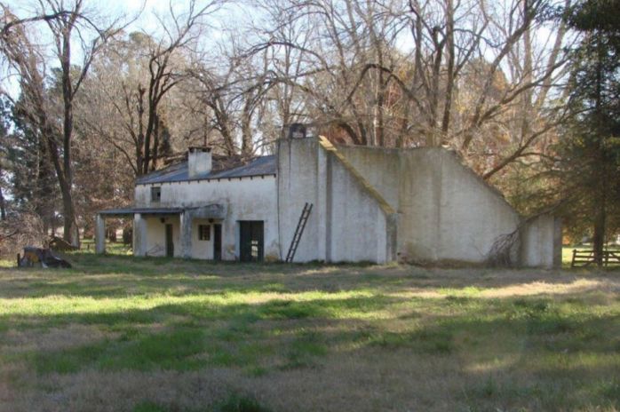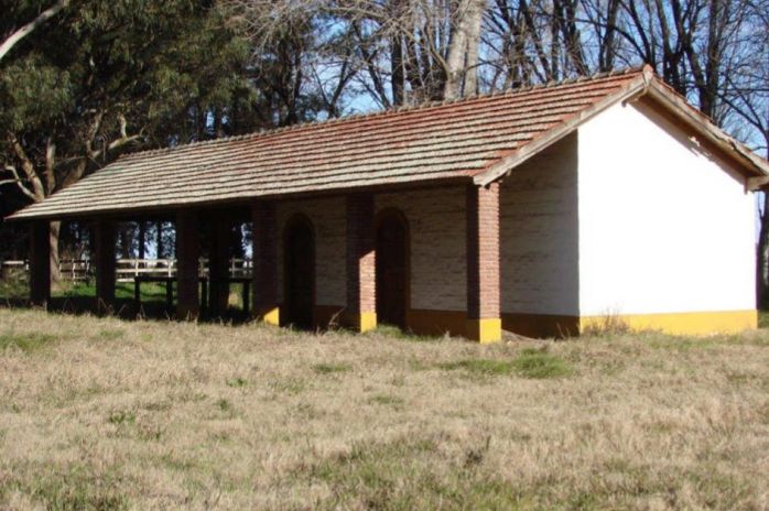 • Galpón tinglado con techo de tejas francesas, mitad cerrado con monturero y 2 depósitos, la otra mitad abierta con columnas de ladrillo a la vista y palenques al medio, con piso, como para ensillar o atar caballos bajo techo.