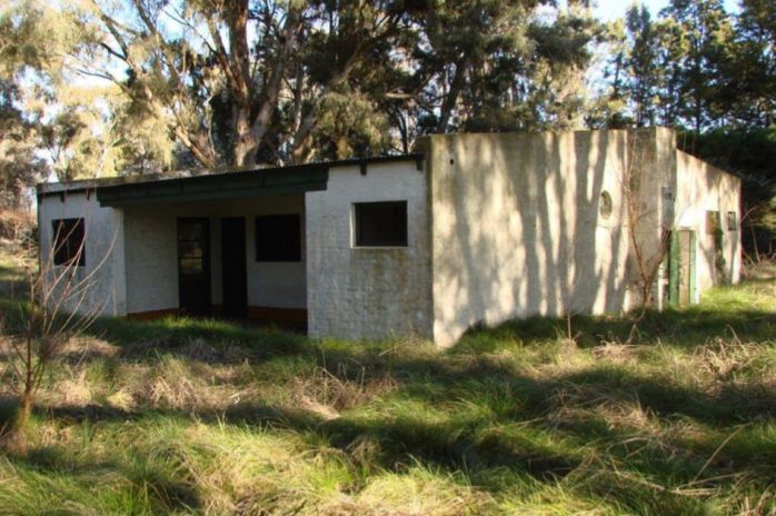 • Soltería de material y techo de chapa con forma de U con 9 dormitorios, comedor matera, cocina, 3 baños, todos con puertas hacia el exterior en la parte interna de la U con vereda techada.