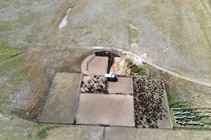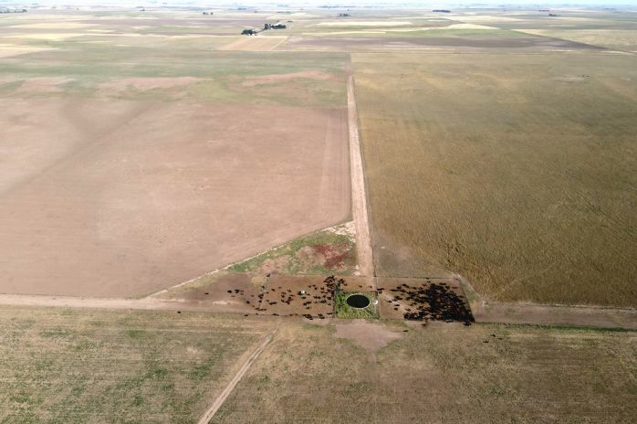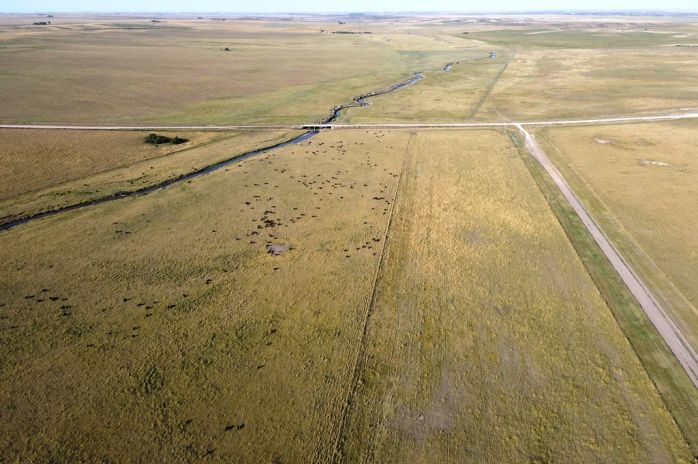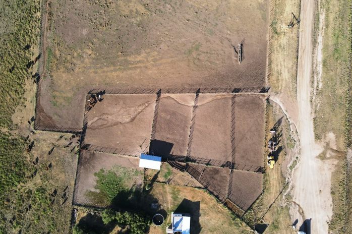 Se encuentra alambrado en su perímetro y subdividido en 17 potreros. Esta abastecido de agua por 7 molinos.