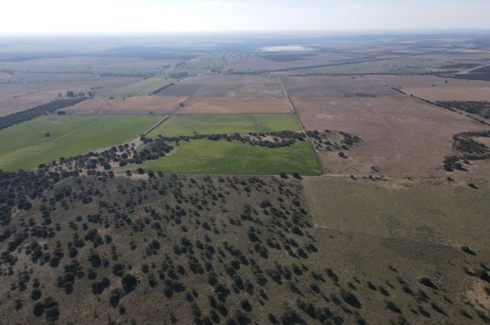 Campo ganadero con relieve ondulado a suavemente ondulado y algunos lotes planos.